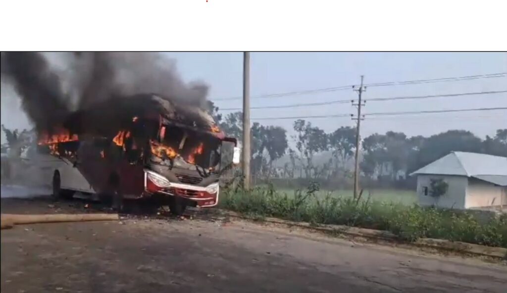 বাস শ্রমিকদের অভিযোগ, এ সময় বাসটিতেও আগুন দেয় উত্তেজিত জনতা। পরে নগরকান্দা ফায়ার সার্ভিস ঘটনাস্থলে পৌঁছে আগুন নেভায়। যদিও বাসটিতে কীভাবে আগুন লেগেছে সে সম্পর্কে নিশ্চিত করে কিছু জানাতে পারেনি পুলিশ বা ফায়ার সার্ভিস। দুর্ঘটনার পরপরই পালিয়ে যায় বাসের চালক।