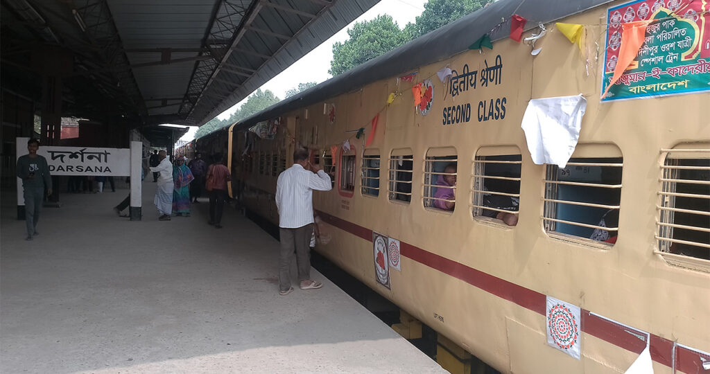 আন্তর্জাতিক রেলস্টেশন ম্যানেজার মির্জা কামরুল ইসলাম ও ইমিগ্রেশন ইনচার্জ (ওসি) আতিক হাসান জানান, ১৯০২ সাল থেকে দু’দেশের মধ্যে (ভারত-বাংলাদেশ) সমঝোতার ভিত্তিতে বাংলাদেশের ধর্মপ্রাণ মুসলমানরা দর্শনা আন্তর্জাতিক রেলপথ দিয়ে ভারতের মেদিনীপুর ওরশে যাতায়াত করে আসছেন।