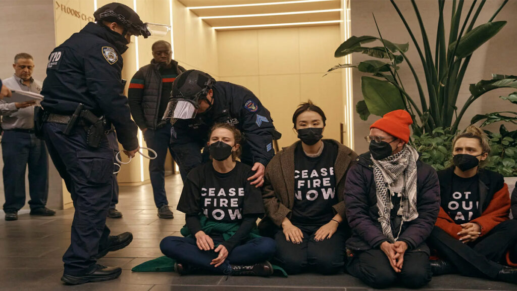 প্রতিবেদনে বলা হয়, বৃহস্পতিবার, কট্টর ইসরায়েলপন্থি গ্রুপ ‘আমেরিকান ইসরায়েল পাবলিক অ্যাফেয়ার্স কমিটি’র নিউইয়র্ক অফিসের সামনে হয় এই প্রতিবাদ কর্মসূচি। এসময় গাজায় গণহত্যা বন্ধের দাবি তোলেন বিক্ষোভকারীরা।