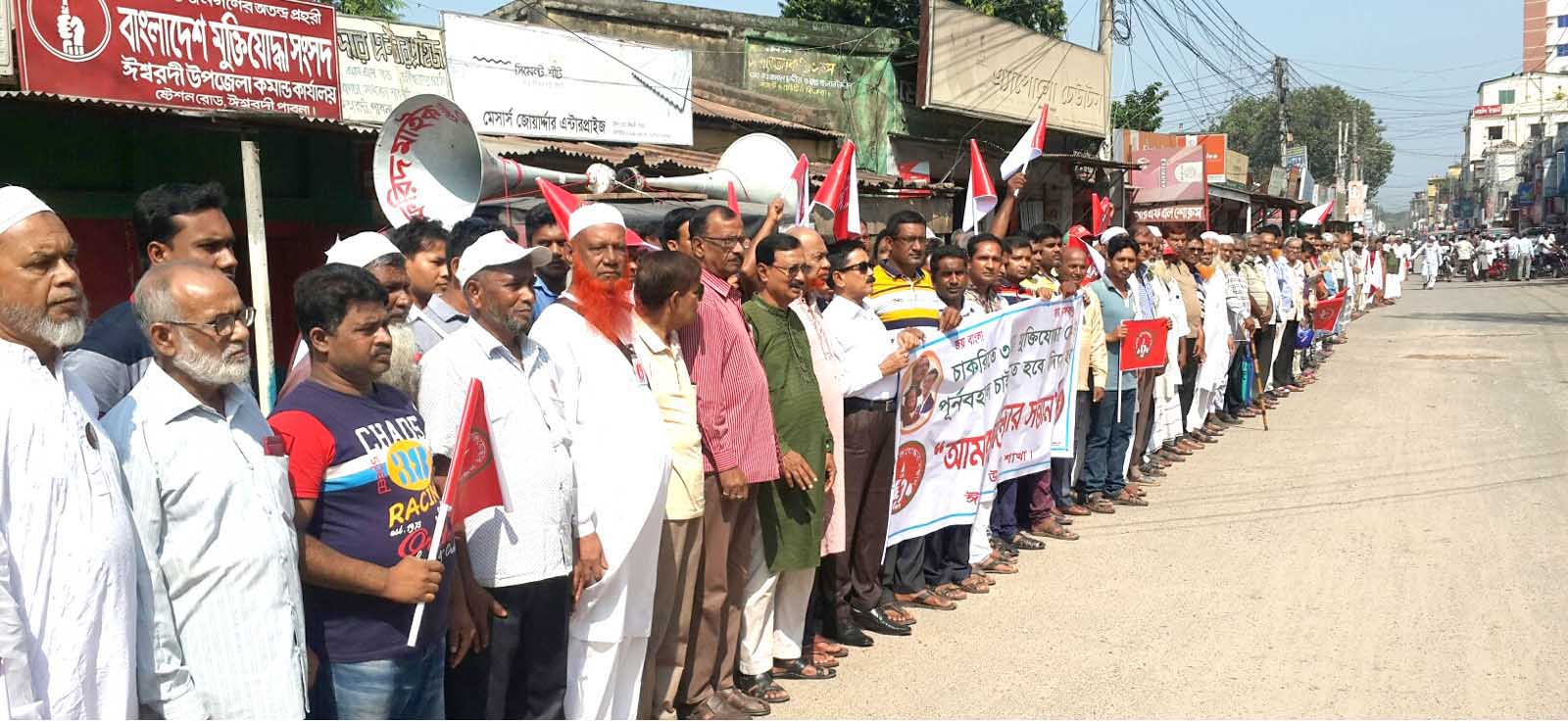চাকরিতে ৩০% কোটা পুনর্বহালের দাবিতে পাবনার ঈশ্বরদীতে মানববন্ধন কর্মসূচি পালন করেছে মুক্তিযোদ্ধার সন্তানরা। সোমবার সকালে ঈশ্বরদী উপজেলা সদরের স্টেশন রোডস্থ মুক্তিযোদ্ধা সংসদ কার্যালয়ের সামনে মানববন্ধনে মুক্তিযোদ্ধা, তাদের সন্তানসহ বিভিন্ন শ্রেণিপেশার মানুষ অংশ গ্রহণ করেন।