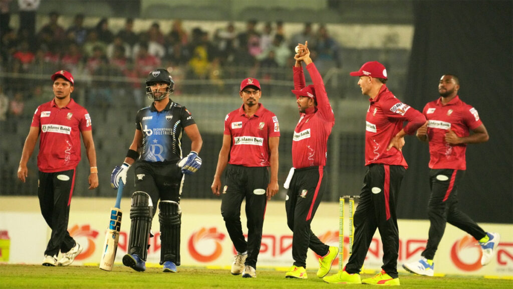 ব্যক্তিগত ৩ রানে মিরাজের বলে সৌম্য সরকারের হাতে ক্যাচ দিয়ে ফেরেন নিকোলাস পুরান। ১০ম ওভারের প্রথম বলেই ফুলারের বলে আবারও মুশফিকের তালুবন্দি হোন ভয়ঙ্কর হয়ে উঠতে থাকা জিমি নিশাম। শেষ খবর পাওয়া পর্যন্ত, ১০ ওভার শেষে ৫ উইকেট হারিয়ে ৪৮ রান সংগ্রহ করেছে সাকিব-সোহানের রংপুর।