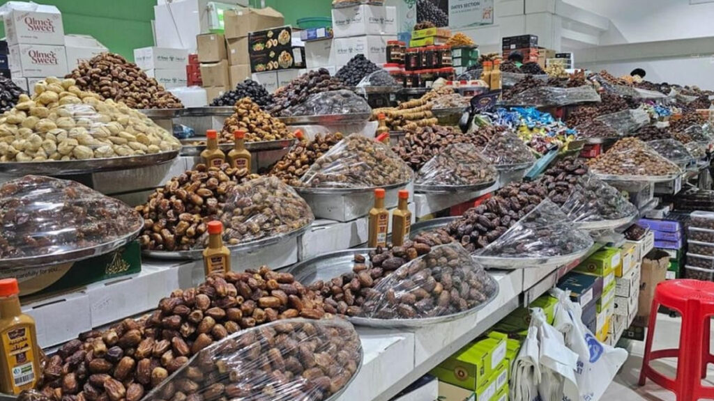 ওয়াটারফ্রন্ট মার্কেটের ১৩০ নম্বর স্টলে খেজুর বিক্রেতা মোহাম্মদ রইস বলছেন, বর্তমানে ডিসকাউন্ট মূল্যে শুকনো ফল দেয়া হচ্ছে। আমরা প্রতিদিন ১০০ কেজির বেশি খেজুর বিক্রি করছি এবং আমরা আশা করছি, আগামী সপ্তাহে প্রতিদিনের বিক্রির পরিমাণ ৫০০ কেজি ছাড়িয়ে যাবে।’