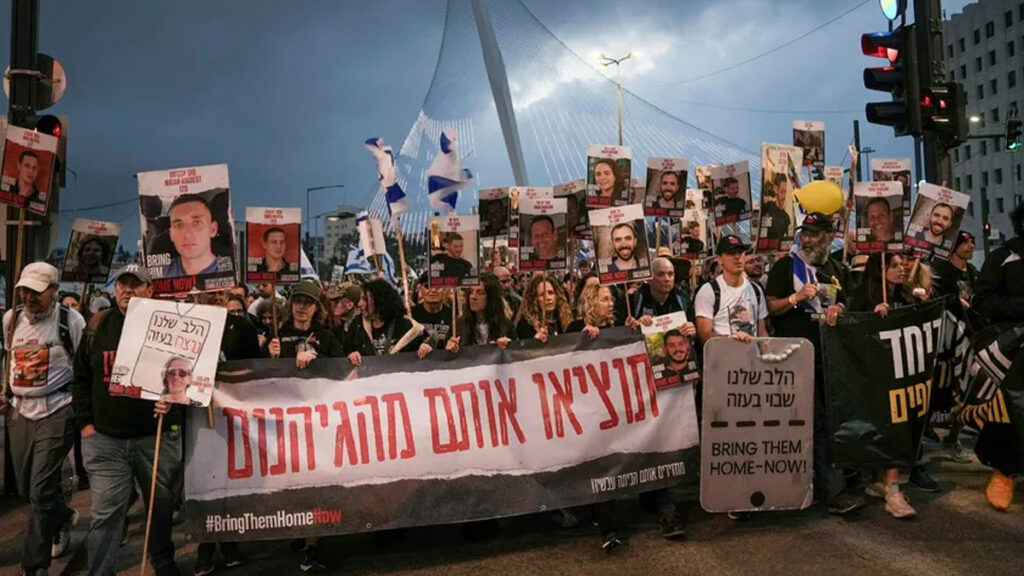 হামাসের কাছে আটক ১৩৪ জিম্মিকে ফেরাতে অবিলম্বে ব্যবস্থা নেয়ার দাবি জানান তারা। জেরুজালেমেও নেতানিয়াহু প্রশাসনের বিরুদ্ধে বিক্ষোভ করে ইসরায়েলিরা। গাজা উপত্যকায় দ্রুত যুদ্ধবিরতি চুক্তির দাবি জানান তারা। প্রধানমন্ত্রী নেতানিয়াহুর বাড়ির দিকে পদযাত্রা কর্মসূচির আহ্বান জানান আয়োজকরা। চার দিন ব্যাপী চলবে এই র্যালি।