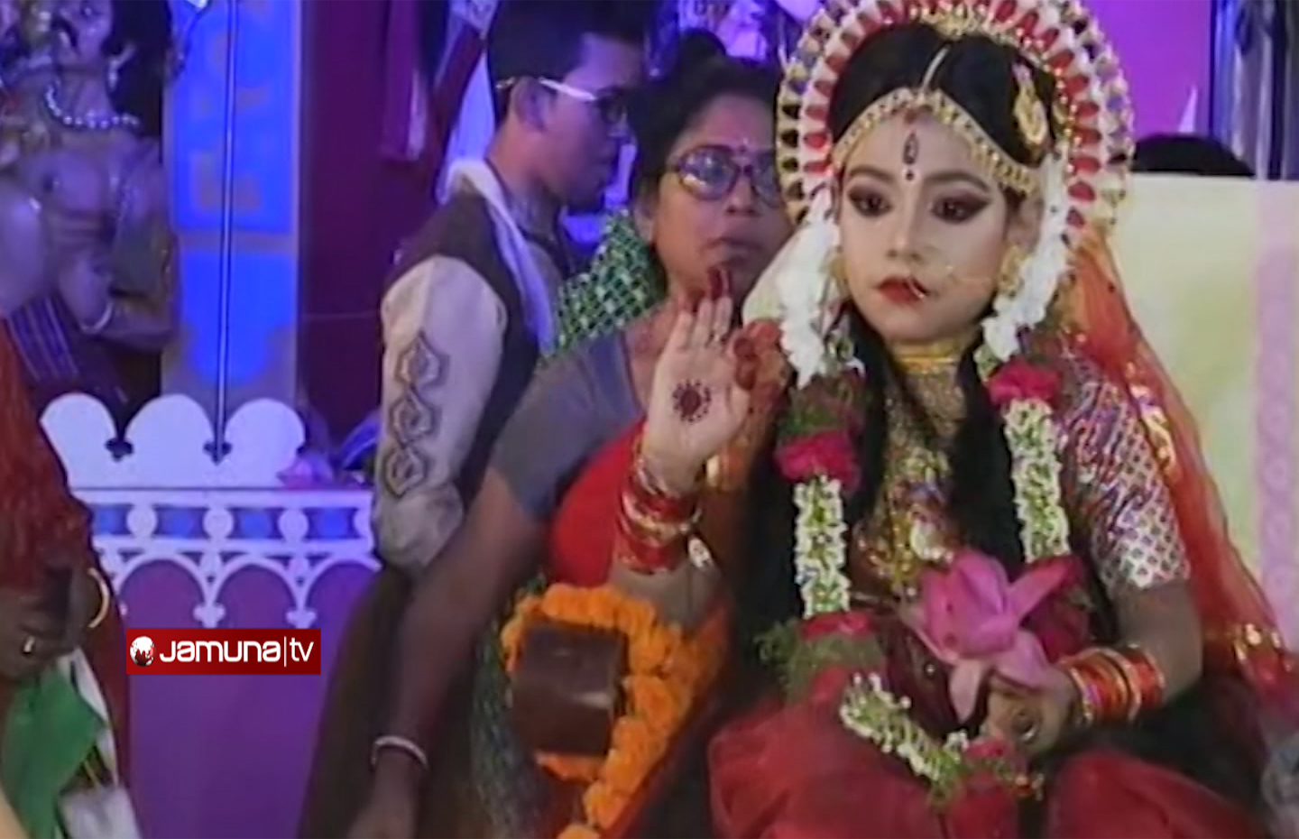 সকাল সোয়া ১১টার দিকে ঢাকার রামকৃষ্ণ মিশনে এক কুমারী কন্যা বসানো হয় দেবির আসনে। তারপর তাকে ঘিরে চলে নানা আচার উপাচার। এবার কুমারি দেবী হয়েছেন মানিকগঞ্জের খাবাশপুরের মেয়ে ৭ বছর বয়সী মিতালী চক্রবর্তী।
