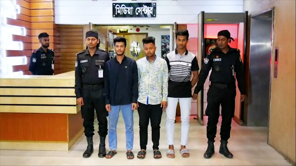 এ সময় তিনি বলেন, আসামি খালিদ হাসান, আরিফ হোসেন ও মেহেদী হাসান মিরাজকে রাজধানীর মুগদা ও মানিকগঞ্জ থেকে গ্রেফতার করা হয়।
