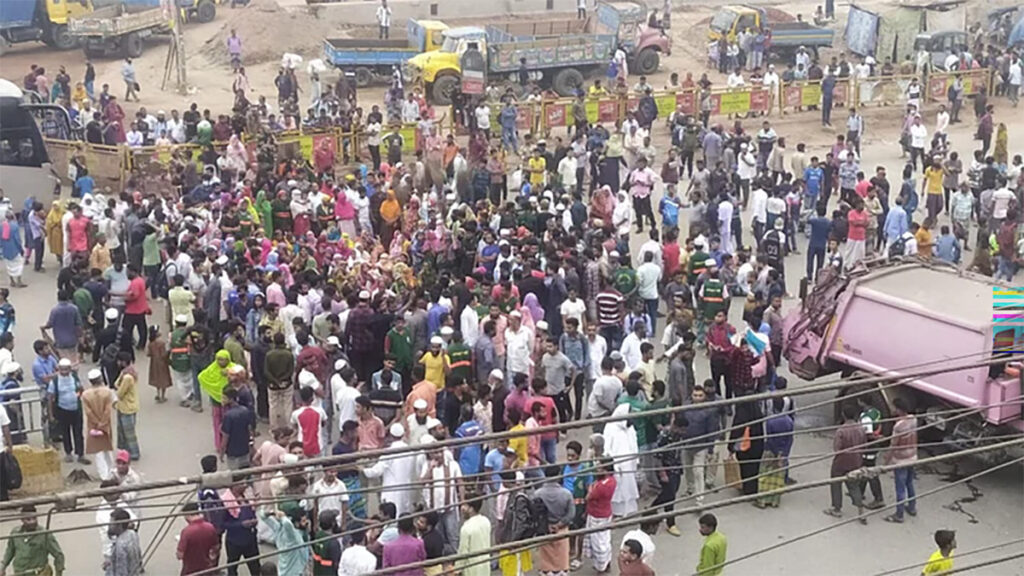 দুর্ঘটনার পর ঢাকা-আরিচা মহাসড়ক অবরোধ করেন উত্তর সিটির প্রায় দেড় হাজার পরিচ্ছন্নতাকর্মী। ফলে রাস্তার দুপাশে সৃষ্ট হয় দীর্ঘ যানজটের। পরে সিটি করপোরেশন কর্মকর্তারা ঘটনাস্থলে গিয়ে পরিস্থিতি শান্ত করেন। সকাল পৌনে ১০টার দিকে পরিচ্ছন্নতাকর্মীরা সড়ক ছাড়লে যান চলাচল শুরু হয়।