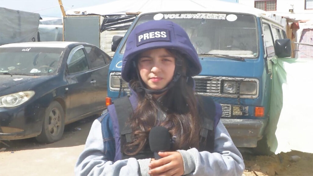 সিসিটিভি প্লাস জানায়, বুকে ‘প্রেস’ লেখা বুলেটপ্রুফ জ্যাকেট, আর মাথায় প্রেসের হ্যাট নিয়ে প্রস্তুত ১১ বছর বয়সী সুমাইয়া ওয়াইশাহ। মাঠে মাঠে তথ্য সংগ্রহে ব্যস্ত। বিশ্বের সামনে তুলে ধরেন ইসরায়েলি বাহিনীর নির্মমতার চিত্র।