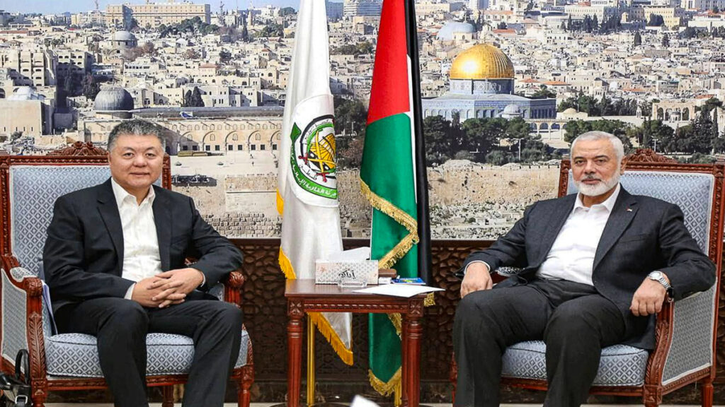 চীনা পররাষ্ট্র মন্ত্রণালয়ের বিবৃতিতে বলা হয়েছে, গত রোববার, চীনের পররাষ্ট্র মন্ত্রণালয়ের দূত ওয়াং কেজিয়ান ও হামাসের শীর্ষ নেতা ইসমাইল হানিয়ার সঙ্গে সাক্ষাৎ করেন। বৈঠকে তারা গাজায় চলমান সংঘাত ও অন্যান্য বিষয় নিয়ে আলোচনা করেন।