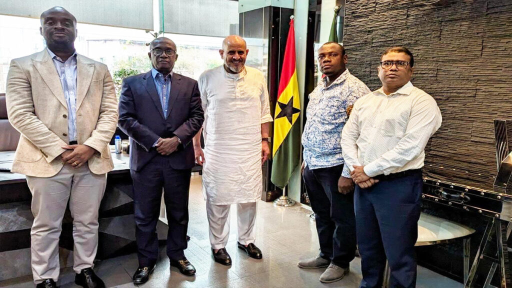 ঘানা ইনভেস্টমেন্ট প্রমোশন সেন্টারের (জিআইপিসি) ইনভেস্টর সার্ভিসেসের পরিচালক এডওয়ার্ড অ্যাশং-লার্টির নেতৃত্বে দেশটির সরকারি একটি প্রতিনিধি দল বাণিজ্য ও বিনিয়োগের জন্য ঘানার বাংলাদেশি অনারারি কনসাল ইব্রাহিম দাউদ মামুনের সাথে বৈঠক করেছেন।