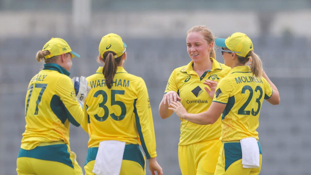 পেরির আরেক শিকার মুর্শিদা খাতুন। ২১ বলে ৮ রান করা বাঁহাতি ব্যাটার ফেরেন উইকেটকিপার অ্যালিসা হিলির হাতে ক্যাচ দিয়ে। আরেক ওপেনার ফারজানা হকের ব্যাটও কথা বলেনি। দলীয় ৮ রানের সময় তিনি কিম গার্থের বলে আউট হন পাঁচ রান করে। ২৪ রানে যখন তিন উইকেট নেই, রিতু মনিকে নিয়ে বিপর্যয় সামাল দিতে পারেননি অধিনায়ক নিগার সুলতানা।