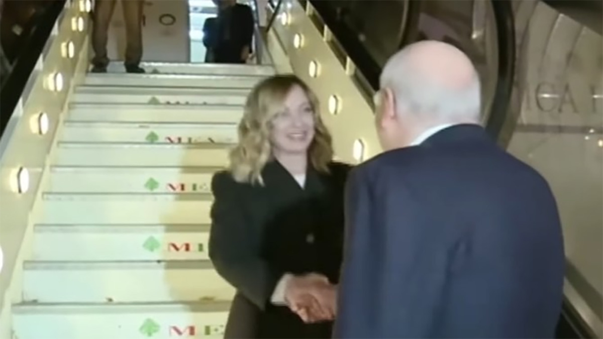 এরপর বিমানের দরজায় উঁকি দিয়ে তাকান মেলোনির দিকে। হাসিমুখেই অবশ্য পরিস্থিতি সামলে নেন লেবানিজ প্রধানমন্ত্রী। অভিবাদন জানান মেলোনিকে। মেলোনিও তার উষ্ণ অভ্যর্থনার জবাব দেন।