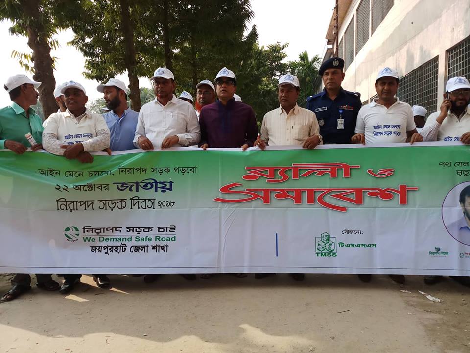 জয়পুরহাটে নানা আয়োজনে পালিত হচ্ছে ’জাতীয় নিরাপদ সড়ক দিবস’। এ উপলক্ষ্যে সোমবার সকাল দশটায় জেলা প্রশাসন, বিআরটিএ ও নিরাপদ সড়ক চাই কমিটির আয়োজনে শহরের বাজলা স্কুল মাঠ থেকে এক বর্ণাঢ্য র্যালি বের করা হয়।