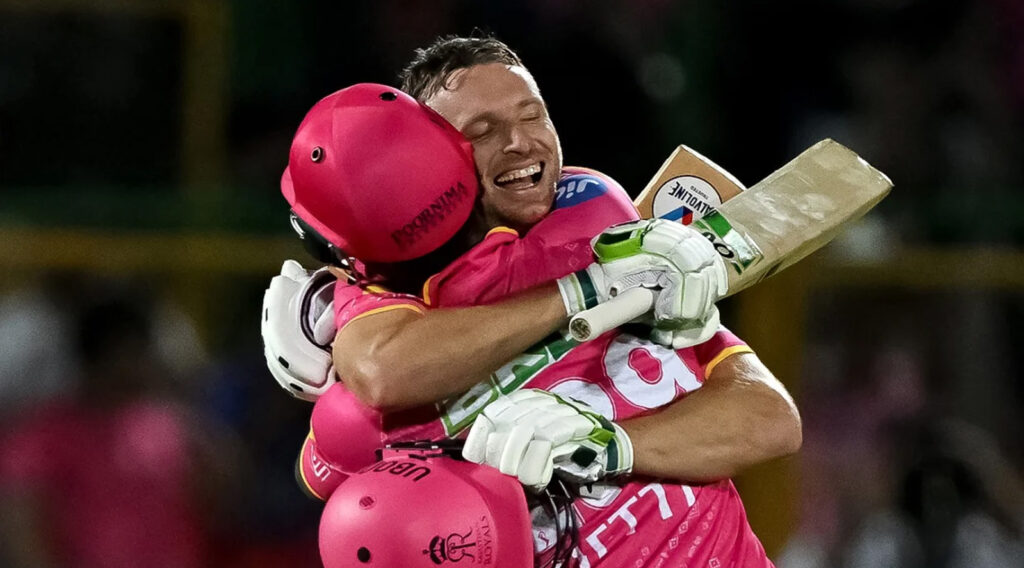 অপরদিকে ১৮৪ রানের লক্ষ্য তাড়ায় নেমে শূন্য রানেই জয়সোয়ালকে ফেরান রিস টপলি। এরপর জুটি গড়েন জস বাটলার ও সাঞ্জু স্যামসন। ১৪৮ রানের জুটি গড়ে দলকে অনেকখানি এগিয়ে নেন এই দুই ব্যাটার। ৬৯ রান করে ফেরেন স্যামসন। রিয়ান পরাগ ও ধ্রুব জুরেল দ্রুত ফিরলেও হেটমায়ারকে সঙ্গে নিয়ে অপরাজিত শতকে রাজস্থানকে ম্যাচ জিতিয়ে মাঠ ছাড়েন বাটলার।