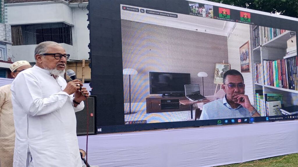 অনুষ্ঠানে বিএনপির জ্যেষ্ঠ যুগ্ম মহাসচিব রুহুল কবির রিজভী বলেন, আওয়ামী লীগের হাতে কসাইয়ের চাকু আর তারেক রহমানের হাতে মানবতার পতাকা। একারণেই তিনি মানুষের খোঁজখবর নেন। ঈশ্বরদীতে শেখ হাসিনার ট্রেন বহরে হামলার ঘটনা মিথ্যা ও জালিয়াতি। এটা শেখ হাসিনার নাটক। এটা জাতীয়তাবাদী শক্তিকে ধ্বংস করার ষড়যন্ত্র।