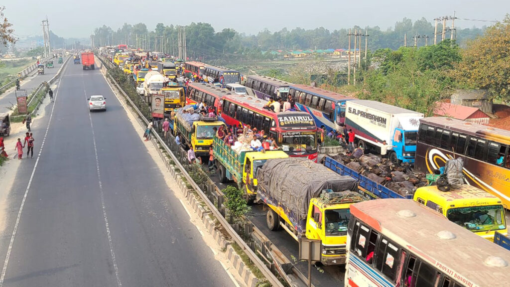 এদিকে পুলিশ জানিয়েছে, ভোরে মহাসড়কের বিভিন্ন স্থানে কয়েকটি যানবাহন বিকল হওয়া এবং অতিরিক্ত যানবাহনের চাপ থাকায় এই যানজটের সৃষ্টি হয়েছে।