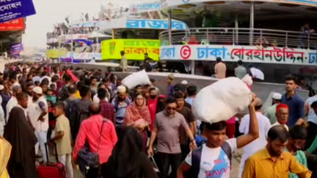 মঙ্গলবার (৯ এপ্রিল) সরেজমিনে রাজধানীর সদরঘাটে দেখা যায় ঘরমুখো মানুষের প্রচণ্ড চাপ। এদিন সকাল থেকেই লঞ্চ ঘাটের প্রতিটি স্থান দখলে নেন ঘরমুখো মানুষ। মালিকপক্ষ জানায়, যাত্রী সুবিধার জন্য আগেই পল্টুনে লঞ্চ ভিড়িয়ে রাখা হচ্ছে। যাত্রীপূর্ণ হলেই নৌযানগুলো ছেড়ে গেছে নিজ গন্তব্যে।