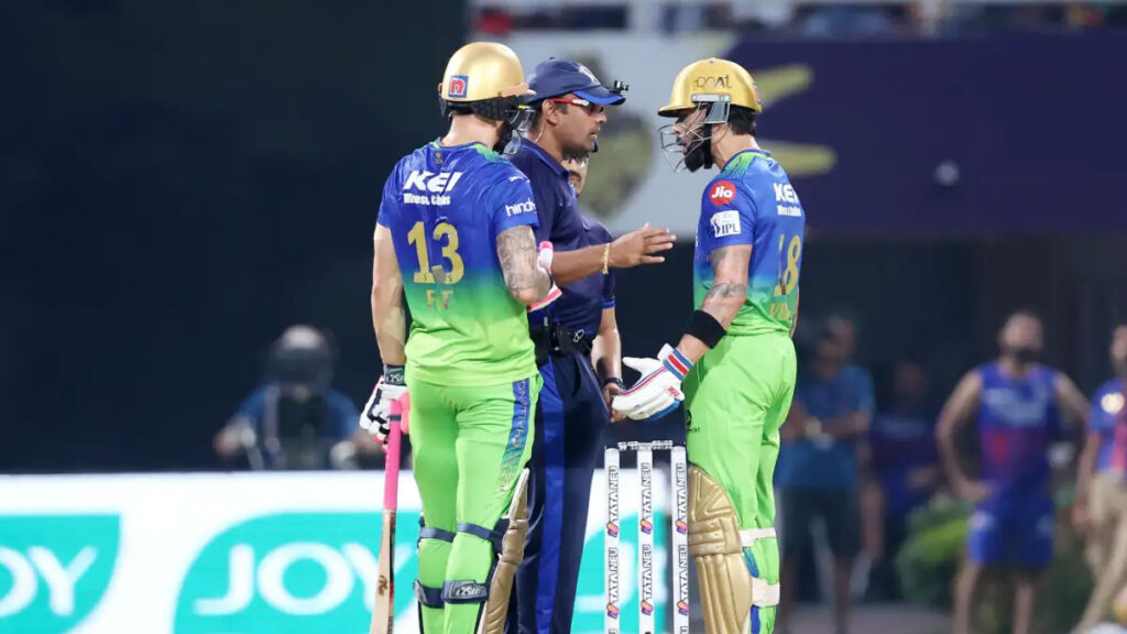 হারশিতের উঁচু ফুল টস বলে তার হাতেই ক্যাচ দেন বেঙ্গালুরুর ওপেনার। কিন্তু কোমর সমান উঁচুতে বল আসায় নো বলের দাবিতে তিনি রিভিউ নেওয়ার আগেই থার্ড আম্পায়ার যাচাই শুরু করে দেন। কিছুক্ষণ পর টিভি আম্পায়ার মাইকেল গফ বলের উচ্চতাকে বৈধ রায় দিয়ে আউটের সিদ্ধান্ত জানান। ক্ষোভে ফেটে পড়েন কোহলি, অনফিল্ড আম্পায়ারের দিকে তেড়েফুঁড়ে যান তিনি। নন স্ট্রাইকে থাকা ফাফ ডু প্লেসিও অসন্তুষ্ট ছিলেন।