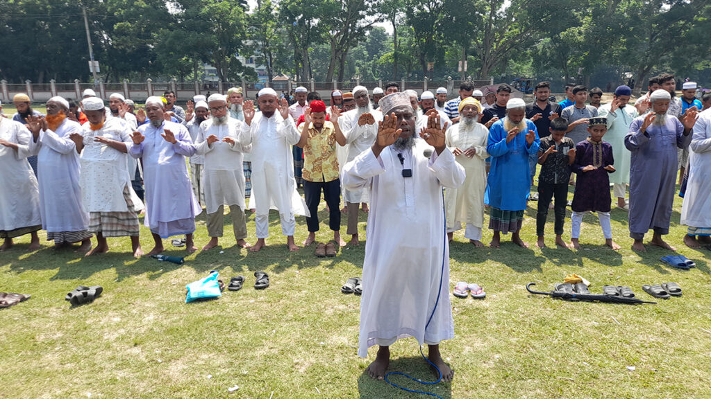 একফোটা বৃষ্টির জন্য যেন চাতকের মতো অপেক্ষায় রয়েছে মানুষ। এমন পরিস্থিতিতে বৃষ্টির প্রার্থনায় দেশের অধিকাংশ জেলায় ‘ইসতিসকার’ নামাজ আদায় করেছে মুসল্লিরা। নামাজ শেষে মুসল্লিরা আল্লাহ’র কাছে বিশেষ মোনাজাত করেন।