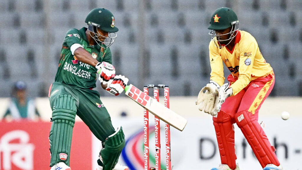 শুক্রবার (১০ মে) শেরে বাংলা জাতীয় ক্রিকেট স্টেডিয়ামে টস হেরে ব্যাটিংয়ে নামে নাজমুল হাসান শান্তর দল। ম্যাচের ১১তম ওভারের শেষ বলে সৌম্য সরকার সিঙ্গেল নিলে শতরানের জুটিতে পৌঁছায় তারা। পরের ওভারেই লুক জঙ্গুয়ের বলে জোনাথন ক্যাম্পবেলের তালুবন্দি হয়ে সাজঘরে ফেরেন তানজিদ হাসান তামিম। আউট হবার আগে তামিম করেন ৩৮ বলে ৫৩ রান। কিছুক্ষণ পর আউট হন সৌম্য সরকারও। ৩৪ বলে ৪১ রান করে জঙ্গুয়ের দ্বিতীয় শিকার হয়ে প্যাভিলিয়নে ফেরেন তিনি।