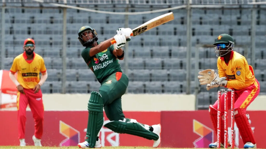 ৯ রানে ২ উইকেট হারিয়ে চাপে পড়ে টাইগাররা। কিন্তু সেই অবস্থা থেকে পরিত্রাণ দিতে পারেনি তাওহিদ হৃদয়ের ব্যাটও। ক্লাইভ মাদান্দের তালুবন্দি হয়ে বেনেটের দ্বিতীয় শিকারে পরিণত হয়ে প্যাভিলিয়নের পথ ধরেন হৃদয়। এরপর মাহমুদউল্লাহকে সাথে নিয়ে ৬৯ রানের জুটি গড়েন অধিনায়ক নাজমুল হোসেন শান্ত। শান্ত ৩৬ রান করে বিদায় নিলে ক্রিজে আসে সাকিব আল হাসান। ১৭ বলে ২১ রান করে লুক জঙ্গুয়ের শিকার হয়ে সাজঘরে ফেরেন সাবেক টাইগার অধিনায়ক।