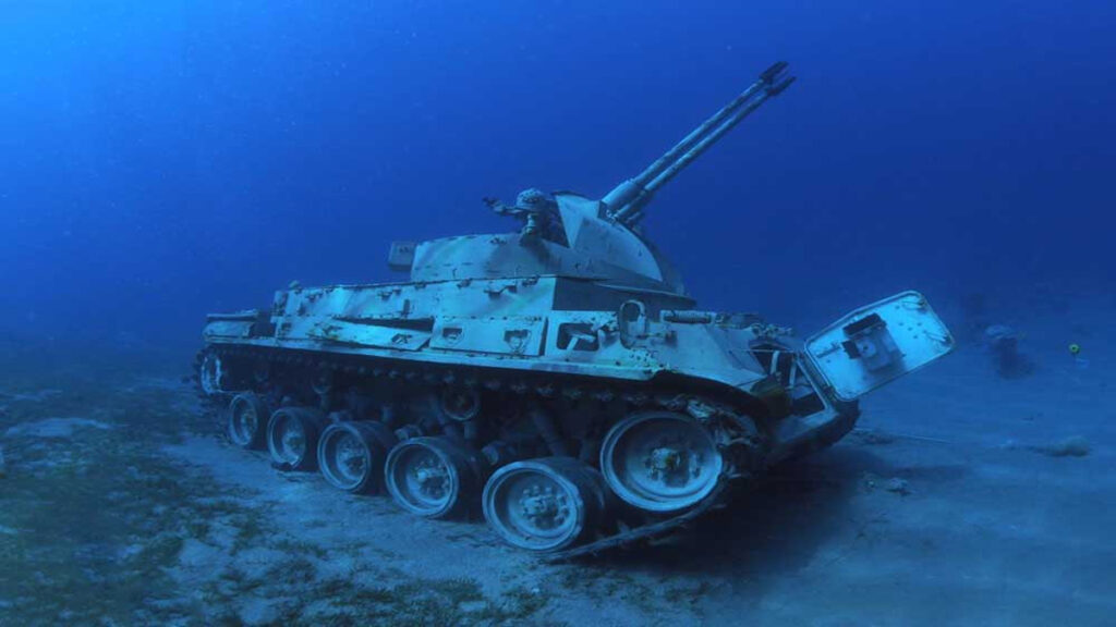 সাগরের তলদেশ নাকি রণক্ষেত্র! প্রথম দেখায় ভ্যাবাচ্যাকা খেয়ে পারেন যে কেউ। মূলত সাগরের নিচে বিশেষ এক জাদুঘর তৈরি করেছে মধ্যপ্রাচ্যের দেশ জর্ডান। লোহিত সাগরের তলদেশে ৫ থেকে ২৮ মিটার গভীরতায় ছড়িয়ে ছিটিয়ে সাজানো হয়েছে সাঁজোয়া যান, ট্যাংকসহ যুদ্ধে ব্যবহৃত বিভিন্ন সরঞ্জাম। যা দিন দিন জনপ্রিয় হয়ে উঠছে স্কুবা ডাইভারদের কাছে। নিজের দেশের ভ্রমণ পিপাসুদের পাশাপাশি আকৃষ্ট করছে বিদেশি পর্যটকদেরও।