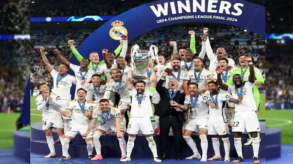শনিবার (১ জুন) দিবাগত রাতে ইংল্যান্ডের ওয়েম্বলি স্টেডিয়ামে দানি কারভাহাল ও ভিনিসিয়াস জুনিয়র গোল করে রিয়ালকে ২-০ ব্যবধানের সহজ জয় এনে দিয়েছেন। এরইমাধ্যমে লস ব্লাঙ্কেসদের ঝুলিতে ঢুকলো ১৫তম চ্যাম্পিয়ন্স লিগ শিরোপা। উদ্ধার হলো, গত মৌসুমে সিটির কাছে হারানো মুকুট।