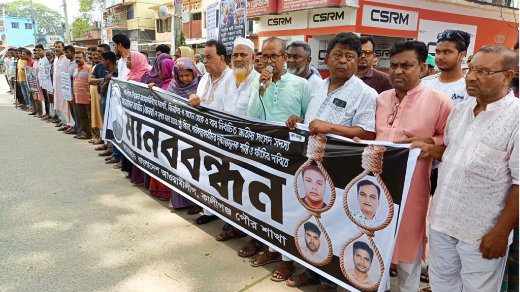 ঝিনাইদহ-৪ আসনের সংসদ সদস্য আনোয়ারুল আজীম আনার হত্যাকারীদের ফাঁসির দাবিতে মানববন্ধন কর্মসূচী পালিত হয়েছে। রোববার (২ জুন) সকালে কালীগঞ্জ শহরের নিশ্চিতপুরে এ কর্মসূচীর আয়োজন করে পৌর আওয়ামী লীগ।