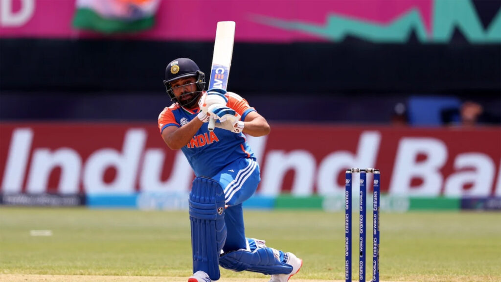 নির্দিষ্ট রানের লক্ষ্যে ব্যাট করতে নেমে শুরুতে দেখেশুনে খেলতে থাকে ভারত। ইনিংসের তৃতীয় ওভারের চতুর্থ বলে মার্ক অ্যাডায়ারের বলে বেন হোয়াইটের হাতে ক্যাচ তুলে দেন ভিরাট কোহলি। মাত্র ১ রান করে সাজঘরে ফেরেন ভিরাট। নতুন ব্যাটার ঋষভ পন্তকে সাথে নিয়ে রোহিত গড়েন ৪৪ রানের জুটি। হাফসেঞ্চুরি তুলে নেওয়ার পর রিটায়ার্ড হার্টে মাঠ ছাড়েন রোহিত। অপরাজিত থাকেন ৫২ রানে।