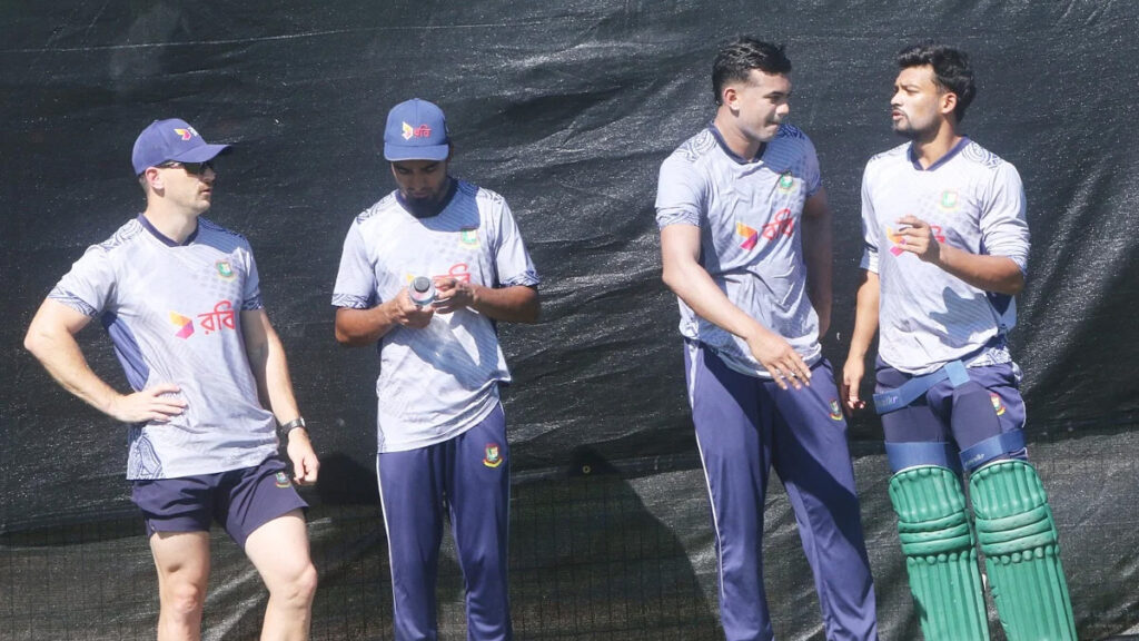 শান্ত যেমন মুশতাকের সাথে কথা বলেছেন তেমনি অধিনায়ককে দেখা গেছে তাসকিনের সাথে। ইনজুরি ফেরত তাসকিনেই যে হতে পারেন দলের ভরসা।