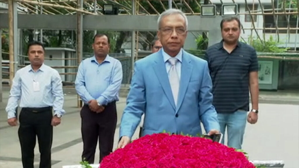 বঙ্গবন্ধু শেখ মুজিবুর রহমানের প্রতিকৃতিতে শ্রদ্ধা নিবেদন করলেন প্রধানমন্ত্রীর নবনিযুক্ত প্রেস সচিব মো. নাইমুল ইসলাম খান। শনিবার (৮ জুন) সকালে ধানমন্ডি ৩২ নম্বরে শ্রদ্ধা নিবেদন শেষে সাংবাদিকদের সাথে কথা বলেন তিনি।