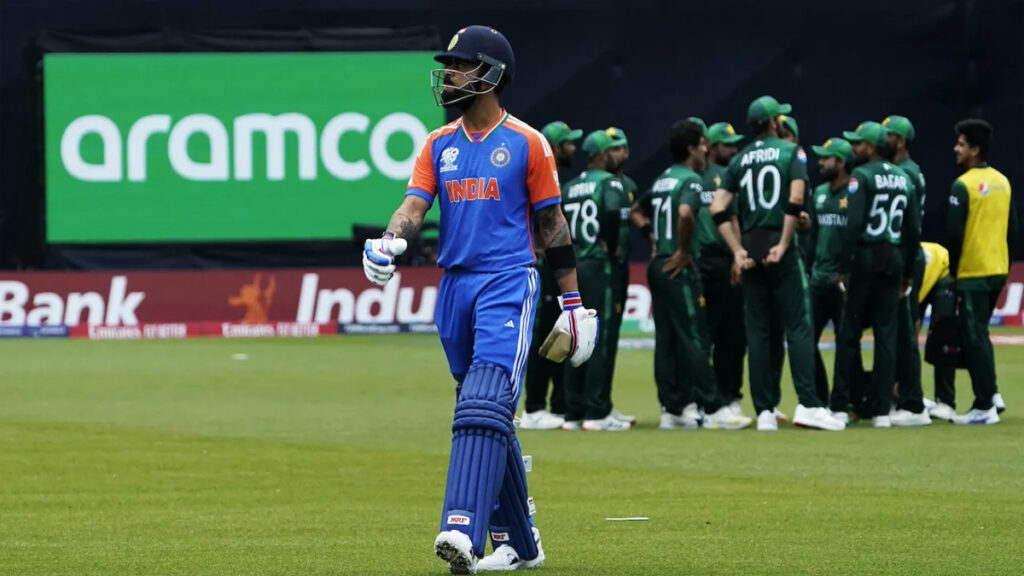 রোববার (৯ জুন) নিউ ইয়র্কের নাসাউ কাউন্টি আন্তর্জাতিক স্টেডিয়ামে টস জিতে ভারতকে ব্যাটিংয়ের আমন্ত্রণ জানান পাকিস্তানের অধিনায়ক বাবর আজম। বাংলাদেশ সময় রাত সাড়ে ৮টায় ম্যাচ শুরু হওয়ার কথা থাকলেও ৩ দফায় বৃষ্টি হলে ম্যাচ শুরু হয় রাত ১০ টায়। আগে ব্যাট করতে নেমে শাহিন আফ্রিদির প্রথম ওভারে ১টি ছক্কার সাহায্যে ৮ রান সংগ্রহ করে ভারত।