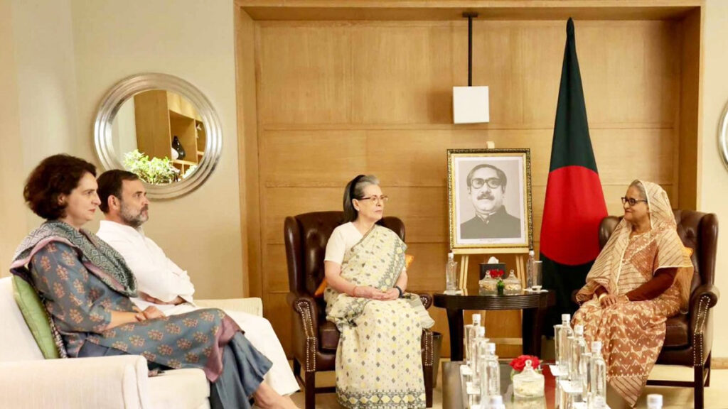 প্রধানমন্ত্রী শেখ হাসিনার সঙ্গে সাক্ষাৎ করেছেন ভারতের কংগ্রেসের সংসদীয় দলের চেয়ারপারসন ও রাজ্যসভা সদস্য সোনিয়া গান্ধি, তার পুত্র ও লোকসভার বিরোধীদলীয় নেতা রাহুল গান্ধি এবং ইন্ডিয়ান ন্যাশনাল কংগ্রেস পার্টির জেনারেল সেক্রেটারি প্রিয়াঙ্কা গান্ধি।