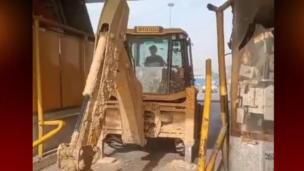 ভিডিওতে দেখা যায়, টোল প্লাজার এক কর্মী তার কাছে টোল চাচ্ছেন। ঠিক তখনই নিজের বুলডোজার দিয়ে তাণ্ডব চালানো শুরু করেন তিনি। শুরুতেই প্রবেশের স্থানে দাঁড়িয়ে থাকা লোহার স্তম্ভে বুলডোজার দিয়ে আঘাত করেন চালক।