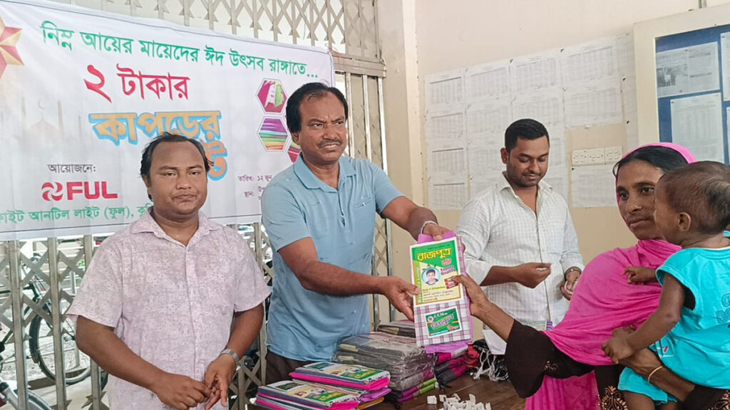 ফাইট আনটিল লাইট-এর নির্বাহী পরিচালক আব্দুল কাদের বলেন, ঈদ উৎসবকে রাঙ্গিয়ে দিতে হাসনাবাদ ইউনিয়নের ৩৫ জন দরিদ্র মাকে মাত্র ২ টাকার বিনিময়ে নতুন কাপড় দেয়া হয়েছে। ‘ফুল’ কাউকে ত্রাণ দেয় না। ত্রাণ নেবার মানসিকতা থেকে বের হয়ে আসা এবং নিজের আত্মসম্মান হেয় না করার জন্য নামমাত্র মূল্যে মায়েদের জন্য এমন আয়োজন করা হয়েছে।