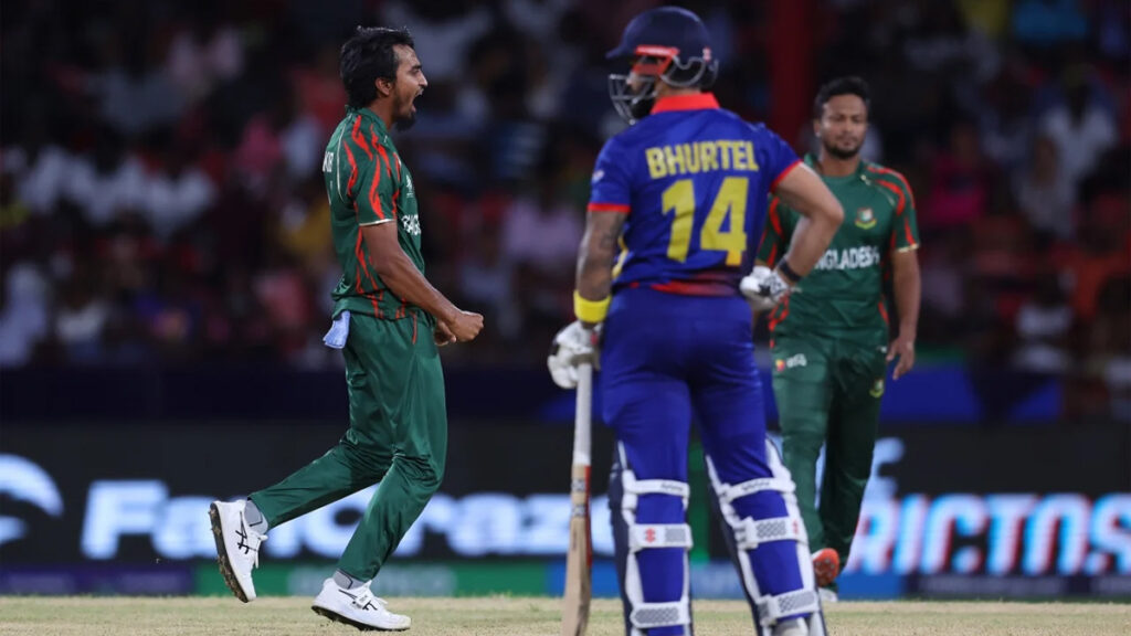 তবে বোলিংয়ে নেমে বেশ ভালো পারফর্ম করছেন টাইগার বোলাররা। একাই চার উইকেট নিয়ে নেপালের টপ অর্ডার ধসিয়ে দিয়েছেন তানজিম সাকিব। প্রতিবেদন লেখা পর্যন্ত, ৭ ওভারে ২৬ রানে ৫ উইকেট হারিয়ে ধুঁকছে নেপাল।