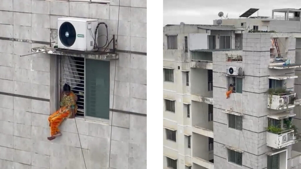 ভবনটি আটতলা হলেও সাততলার উপরে অংশজুড়ে বাসা ছিল না। অষ্টম তলার কিছু অংশজুড়ে বাসা ছিল। বাকি অংশ খোলা ছিল। যা ছাদবাগান হিসেবে ব্যবহার করা হতো। সেই পাশ থেকেই নিচে নামার চেষ্টা করে আইরিন।