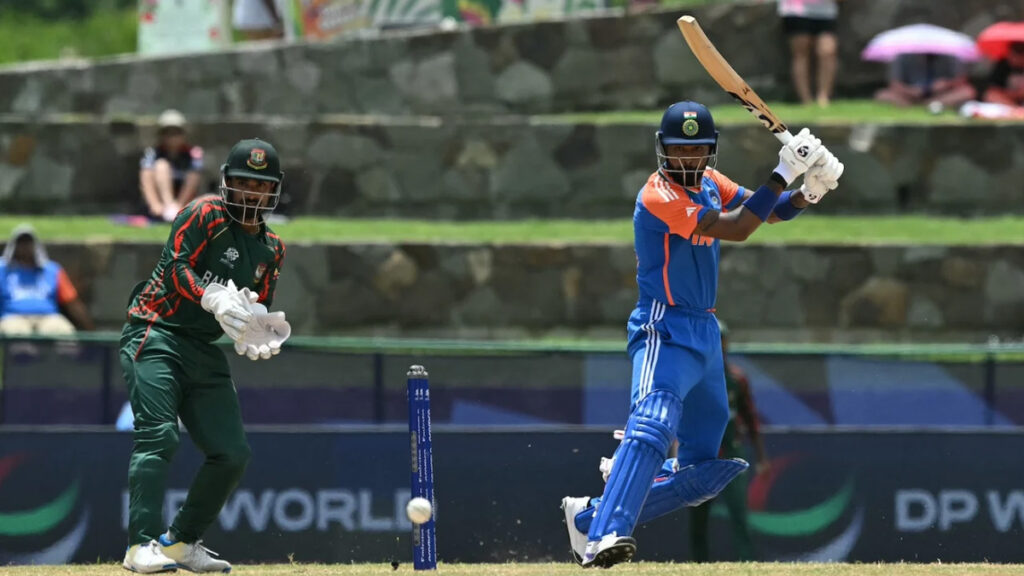 আইসিসি টি-টোয়েন্টি বিশ্বকাপে সুপার এইটের ম্যাচে বাংলাদেশকে ১৯৭ রানের টার্গেট দিয়েছে ভারত। শনিবার (২২জুন) অ্যান্টিগার স্যার ভিভিয়ান রিচার্ডস স্টেডিয়ামে টস হেরে ব্যাটিংয়ে নেমে নির্ধারিত ওভার শেষে ৫ উইকেট হারিয়ে এ রানের সংগ্রহ পায় মেন ইন ব্লু’রা। দলের পক্ষে সর্বোচ্চ ৫০ রান আসে হার্দিক পান্ডিয়ার ব্যাট থেকে।