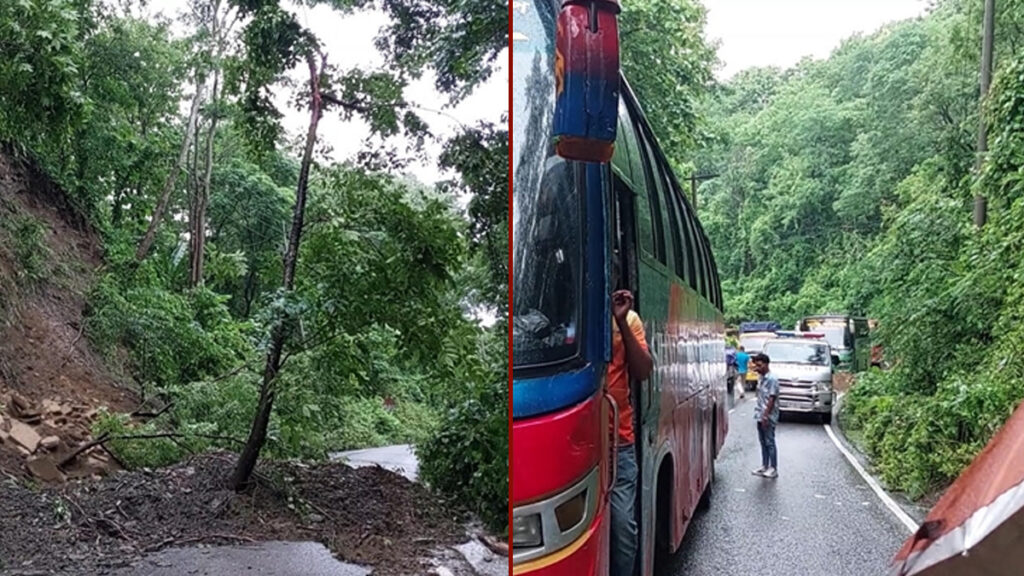 আটকা পড়া যাত্রীরা জানান, সকালে সাপমারা এলাকায় পাহাড়ের মাটি ধসে যাওয়ায় অনেকক্ষণ ধরে যান চলাচল বন্ধ রয়েছে। সড়কের মাটি সরানোর কাজ করছে ফায়ার সার্ভিস।