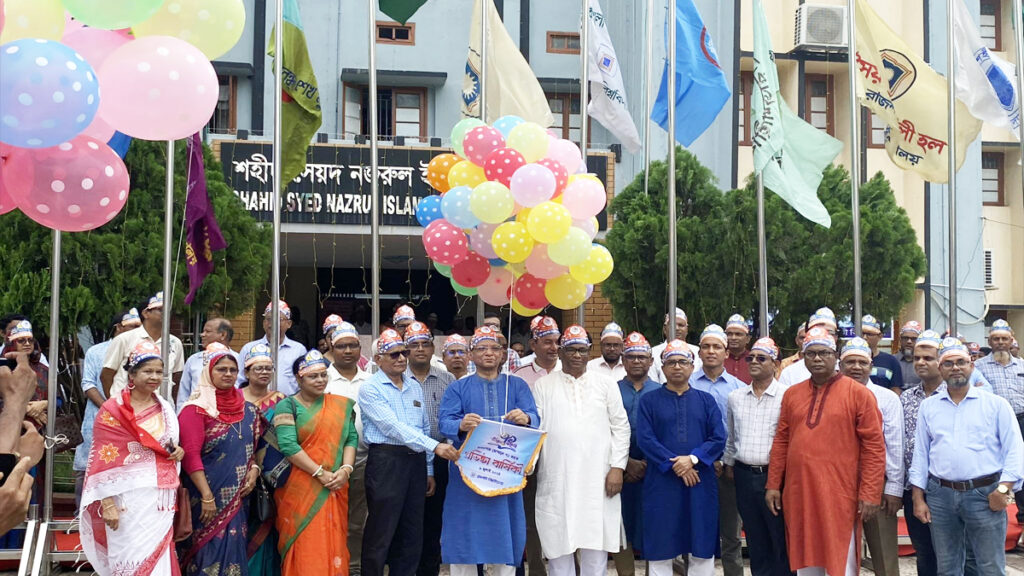 এদিন সকাল ১০টায় বিশ্ববিদ্যালয়ের শহীদ সৈয়দ নজরুল ইসলাম প্রশাসন ভবন চত্বরে জাতীয় সঙ্গীত পরিবেশন করা হয়। এ সময় বিশ্ববিদ্যালয়ের উপাচার্য অধ্যাপক গোলাম সাব্বির সাত্তার জাতীয় পতাকা, উপ-উপাচার্য অধ্যাপক সুলতান-উল-ইসলাম অধ্যাপক ও উপ-উপাচার্য হুমায়ুন কবীর বিশ্ববিদ্যালয়ের পতাকা উত্তোলন করেন। আর হলের প্রাধ্যক্ষরা নিজ নিজ হলের পতাকা উত্তোলন করেন।