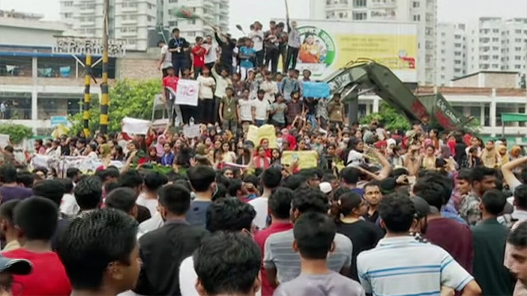 শুক্রবার (২ আগস্ট) বিকেলে ইসিবি চত্বরে মিছিল নিয়ে জড়ো হয় শিক্ষার্থীরা। সেখানে তারা জমায়েত হয়ে বিক্ষোভ করতে থাকে। সাম্প্রতিক সহিংসতায় শিক্ষার্থী নিহতের ঘটনায় সুষ্ঠু তদন্ত করে বিচারের দাবি জানান আন্দোলনকারীরা।