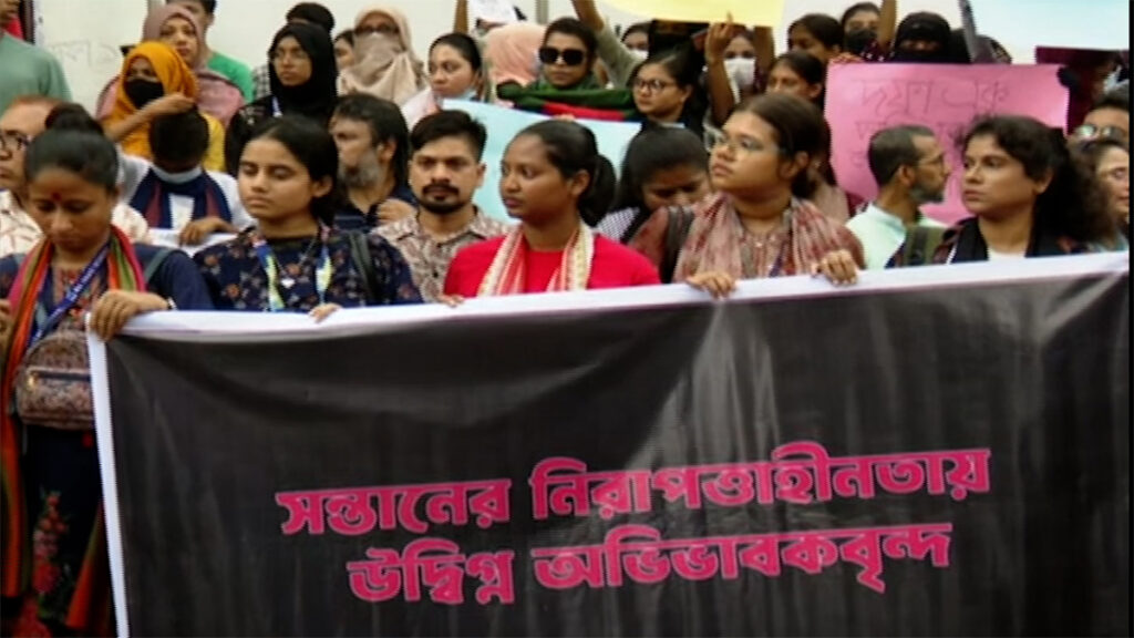 অপরদিকে, উত্তরায় বিভিন্ন কলেজ ও বিশ্ববিদ্যালয়ের শিক্ষার্থীরা জড়ো হয়ে বিক্ষোভ মিছিল করেছে। চারদিকে কড়া পুলিশ-বিজিবির পাহাড়ার মধ্যে বিএনএস সেন্টারের সামনে দুপুর ১২টায় শুরু হয় মানববন্ধন ও বিক্ষোভ সমাবেশ।