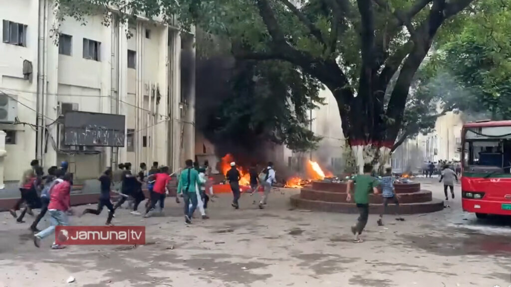 শাহবাগ মোড়ে অবস্থান নিয়েছে একটি পক্ষ। এর আগেই বঙ্গবন্ধু শেখ মুজিব মেডিকেল বিশ্ববিদ্যালয়ের (বিএসএমএমইউ) ভেতরে অবস্থান নেয় আরেকটি দল। তাদের প্রতিহত করতে গেট ভেঙে ভেতরে প্রবেশ করে আন্দোলনকারীরা।