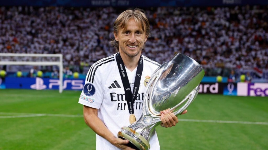 রিয়ালের হয়ে সর্বোচ্চ ২৭ ট্রফি জেতা মদ্রিচকে ক্লাবের পক্ষ থেকে স্মারক জার্সি উপহার দেয়া হয়েছে। মদ্রিচের রেকর্ড গড়ার ম্যাচে রেকর্ড সর্বোচ্চ ষষ্ঠবারের মতো সুপার কাপ জিতেছে রিয়াল। পাঁচবার করে সুপার কাপ জিতেছে বার্সেলোনা ও এসি মিলান। রিয়ালের হয়ে গোল করেছেন এমবাপ্পে ও ফেদে ভালভের্দে।