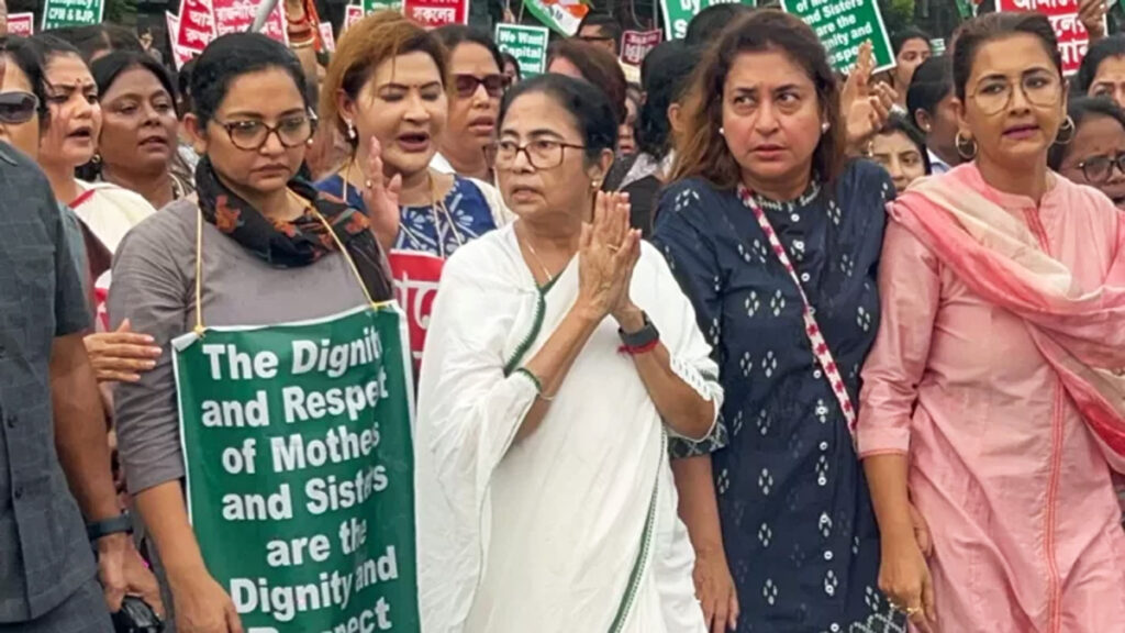 কলকাতার আরজি কর হাসপাতালে এক তরুণী চিকিৎসকের ধর্ষণ ও হত্যার ঘটনায় সারা ভারত উত্তপ্ত। দোষীদের ফাঁসি চেয়ে এবার রাজপথে নামলেন পশ্চিমবঙ্গের মুখ্যমন্ত্রী মমতা বন্দ্যোপাধ্যায়ও। ভারতের কেন্দ্রীয় তদন্ত সংস্থাকে (সিবিআই) রোববারের মধ্যে তদন্ত শেষ করতে হবে বলেও দাবি করেছেন তিনি। শুক্রবার (১৬ আগস্ট) কলকাতার রাজপথে দেখা যায়, দাবির কথা লেখা অসংখ্য প্ল্যাকার্ড সহ একটি মিছিলের একেবারে সামনের সারিতে রয়েছেন মমতা। এসময় তার সঙ্গে ছিলেন তৃণমূল কংগ্রেসের মহিলা এম পি এবং বিধায়কেরাও।
