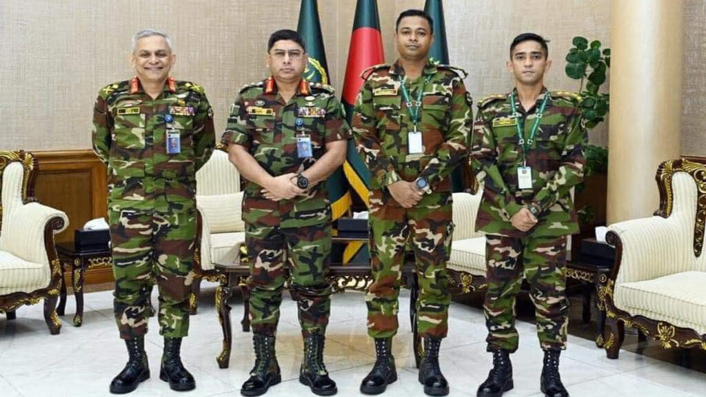 পেশাদারিত্ব এবং ধৈর্যের পরিচয় দেয়া আলোচিত বাংলাদেশ সেনাবাহিনীর ক্যাপ্টেন আশিক দেখা করেছেন সেনাপ্রধানের সাথে। রোববার (১৮ আগস্ট) দুপুরে সেনাপ্রধানের কার্যালয়ে এ সাক্ষাৎ অনুষ্ঠিত হয়।