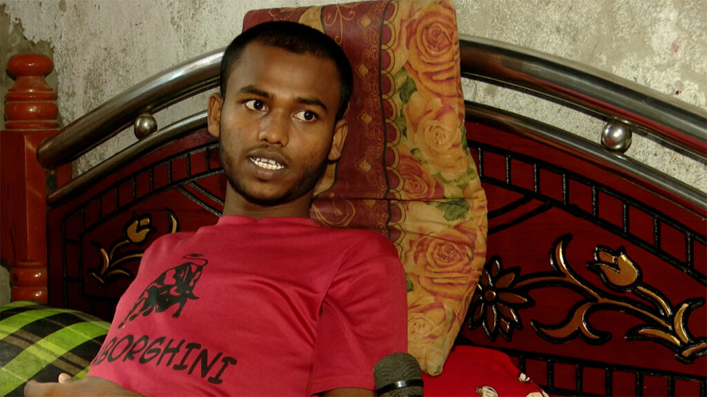 বেঁচে আছেন যদিও দুই পা ভর্তি গুলির ক্ষত। মেরাদিয়ার ছোট্ট এক ঘরে শুয়ে সেরে ওঠার অপেক্ষায় জীবনের কঠিনতম সময় দেখা ১৮ বছরের এই তরুণ।
