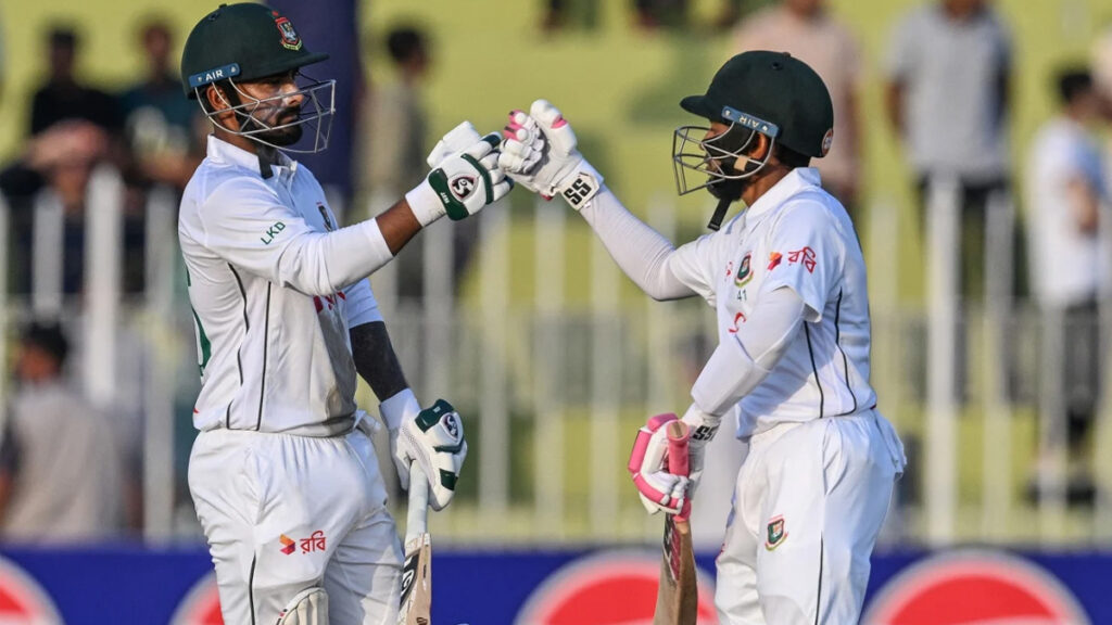 রাওয়ালপিন্ডি টেস্টে প্রথমে ব্যাট করতে নেমে ৪৪৮ রান করে ইনিংস ঘোষণা করেছিল স্বাগতিক পাকিস্তান। তবে বড় লক্ষ্য তাড়া করতে নেমে দুর্দান্ত নৈপুণ্য দেখিয়েছেন বাংলাদেশের ব্যাটাররা। তৃতীয় দিন শেষে ৫ উইকেট হারিয়ে ৩১৬ রান তুলেছে বাংলাদেশ। জোড়া হাফ সেঞ্চুরি এসেছে মুশফিকুর রহিম ও লিটন দাসের ব্যাটে।