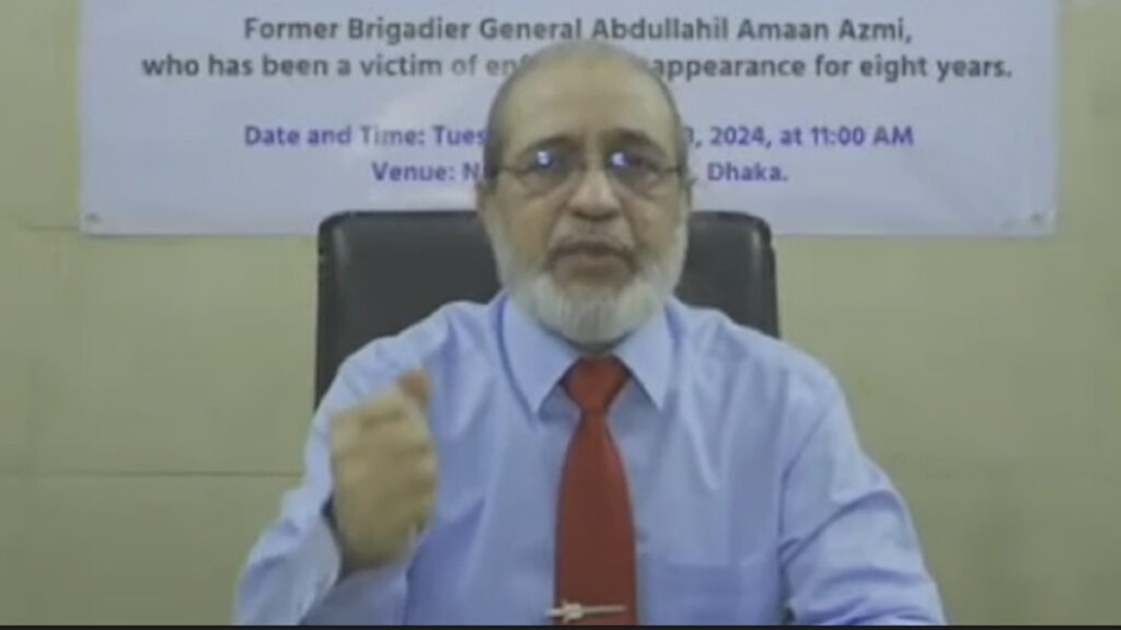 জাতীয় প্রেসক্লাবে সংবাদ সম্মেলন ডাকা হলেও আযমী ভার্চুয়াল ব্রিফিং করেন। জানান, তুলে নেয়ার পর প্রতিদিন নতুন কায়দায় তার ওপর নির্যাতন চালানো হয়েছে। অসুস্থতার কারণে গত কয়েক দিন তিনি গণমাধ্যমের মুখোমুখি হননি।