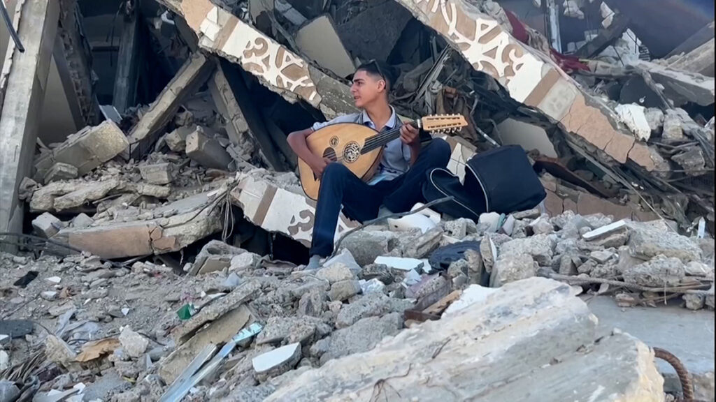 যে বয়সে হেসে খেলে দিন কাটানোর কথা, সে বয়সে অন্যের মানসিক স্বাস্থ্য নিয়ে দুশ্চিন্তায় গাজার এই কিশোর। প্রিয় বাদ্যযন্ত্র ওউদের মোহনীয় সুর দিয়ে গাজার স্বজন হারানো শিশুদের মন ভোলানোর চেষ্টা করছে ১৫ বছর বয়সী সাদ। প্রায় ১১ মাস ধরে চলা আগ্রাসনের যে ভয়াবহ প্রভাব পড়েছে উপত্যকাটির শিশুদের ওপর, তা কিছুটা হলেও কাটানোর চেষ্টায় তৎপর এই কিশোর। ঘর-বাড়ির ধ্বংসস্তুপে ঢাকা পড়া রাস্তা পেরিয়ে তাই প্রতিদিন শরণার্থী শিবিরে গিয়ে সে গান শোনায় শিশুদের, শেখায় ওউদ বাজানো।