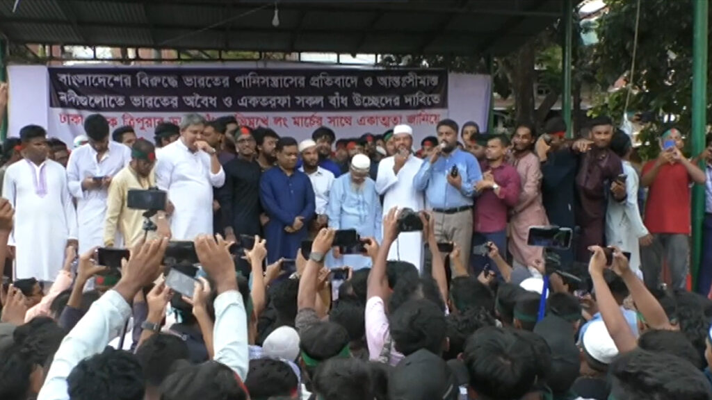 সমাবেশে বক্তারা ভারতের পানি সন্ত্রাসের প্রতিবাদ জানান। এ সময় সকল নদীর ওপর ভারতের এক তরফা দেয়া বাঁধ উচ্ছেদের জন্য সরকারকে সচেষ্ট হওয়ার দাবি জানান তারা।